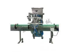 玻璃瓶真空旋盖机主要用于各种瓶盖的旋紧和旋松,针对化妆品、医药、兽药、农药、润滑油行业的抽真空瓶盖设备。(辣椒酱玻璃瓶、罐头、高档保健品等),这款玻璃瓶旋盖机是以电气程序控制和气动驱动实现运转为主的设备,和传统机械传动设备有很大的区别,整机采用气缸作为主要的动力原件,各动作原件通过编程控制器协调动作,应用数目较多的传感器检测瓶子、盖子和设备上的动作部件。另通过plc(可编程控制器)编程实现自动进出罐、自动配盖、抽真空、夹紧瓶身、旋盖等动作;气动装置,运行灵活,无污染,维护方便。